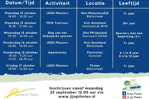 Op deze pagina zie je alle Jij op Tholen-activiteiten die georganiseerd worden. Houd deze pagina altijd in de gaten voor toffe nieuwe activiteiten. Er staat vast wel iets voor jou tussen!